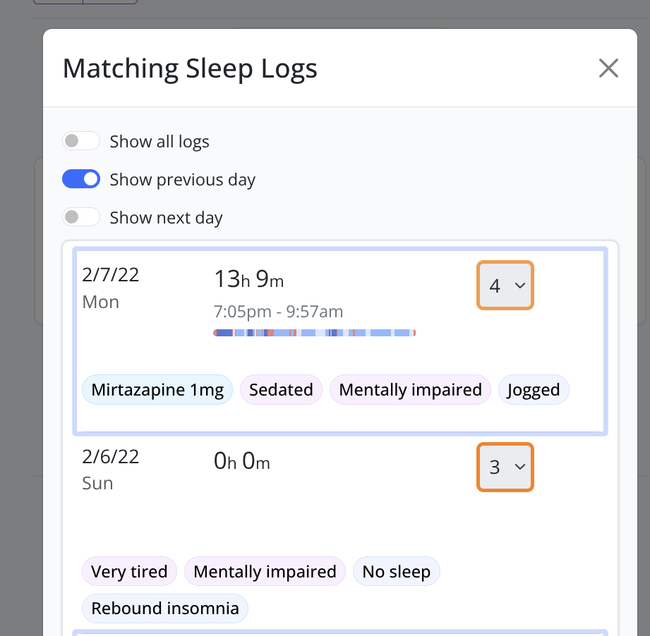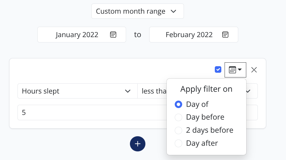 We now support the ability to filter sleep logs based on conditions that happened the day before. What happened yesterday can have an impact on how you slept or felt today.
