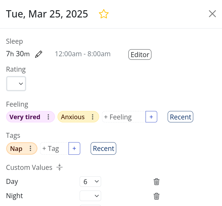 Today I'm announcing one of the features I've wanted for a while. You can now create custom values on your sleep logs! Let me walk you through it.