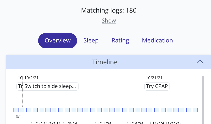 When you go to your dashboard, you can see these events overlayed on a grid of your sleep logs: